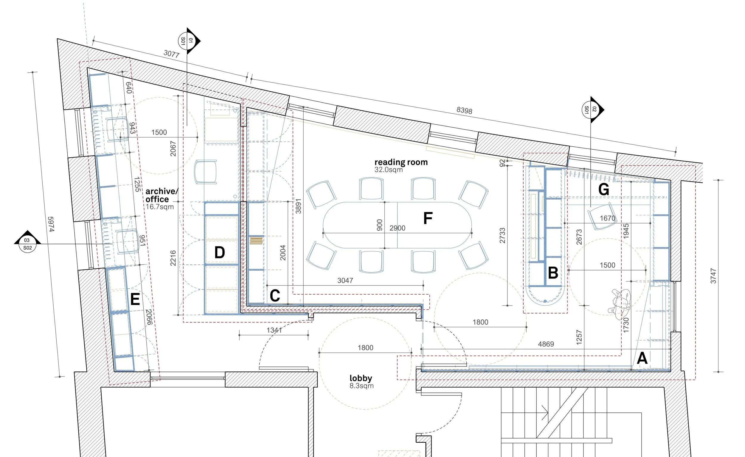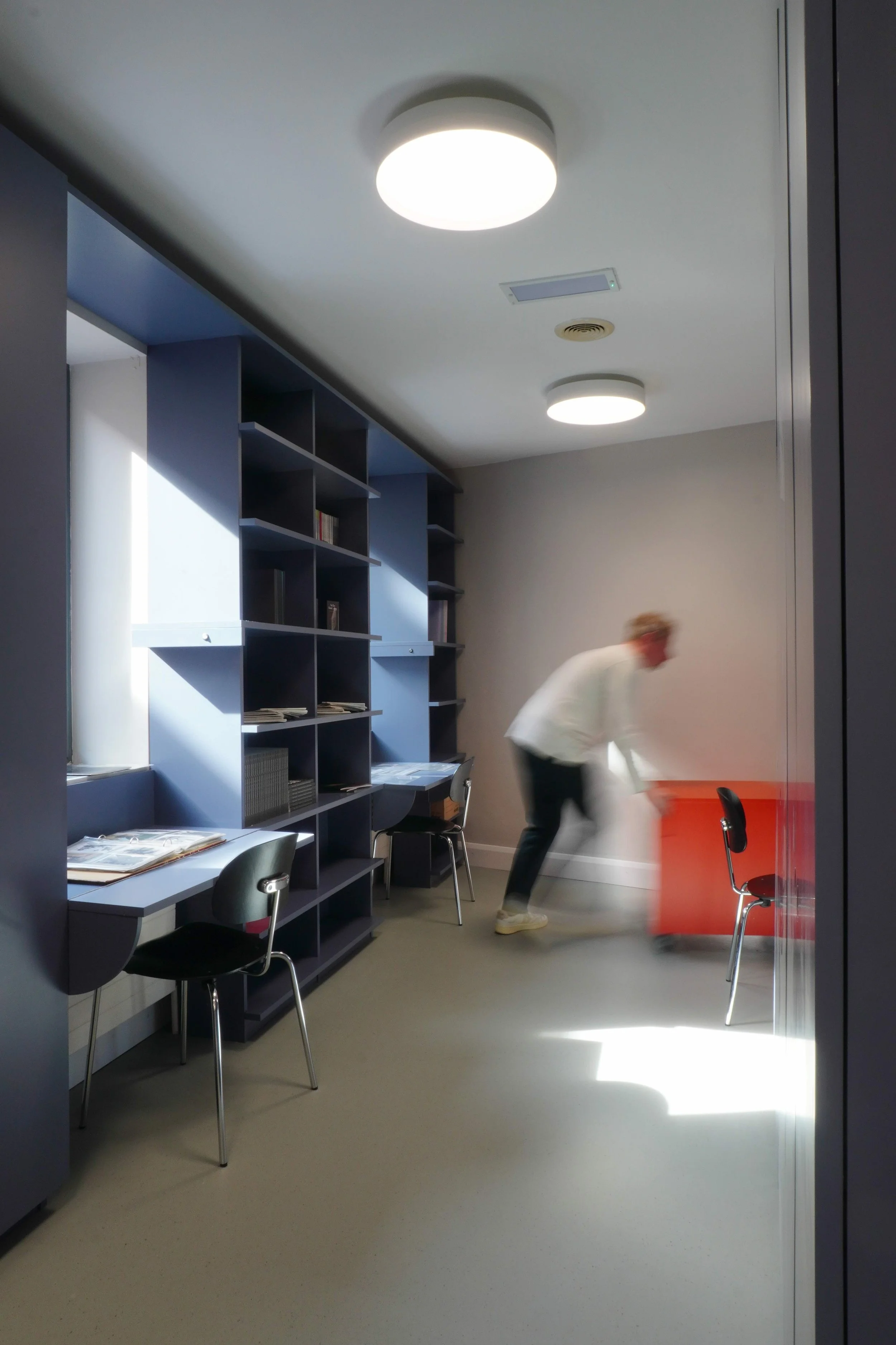 The brief for this project sought to convert two existing spaces within Create’s offices into a new archive and reading room, which would accommodate over 1,500 books and other material, including archive storage and IT equipment.